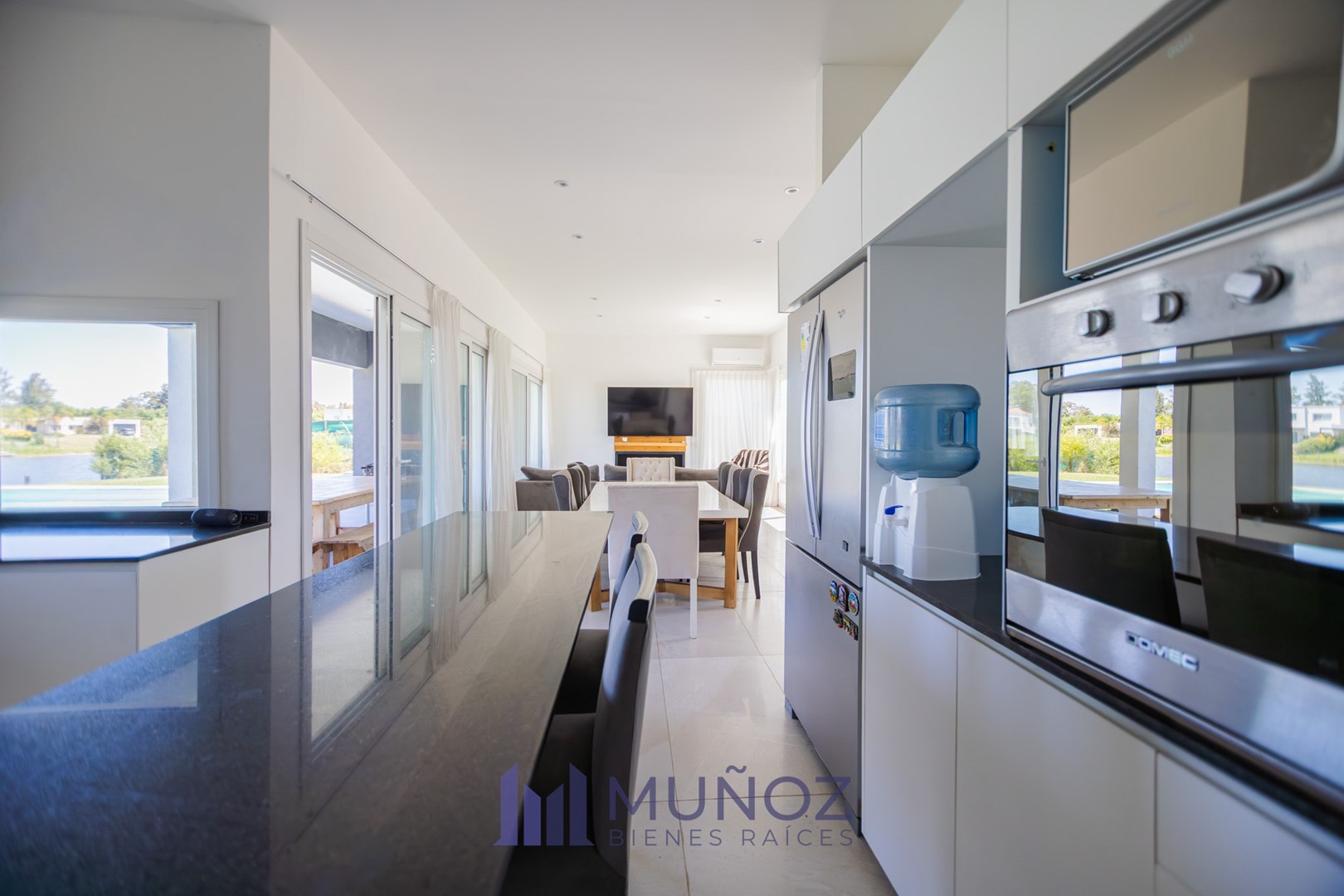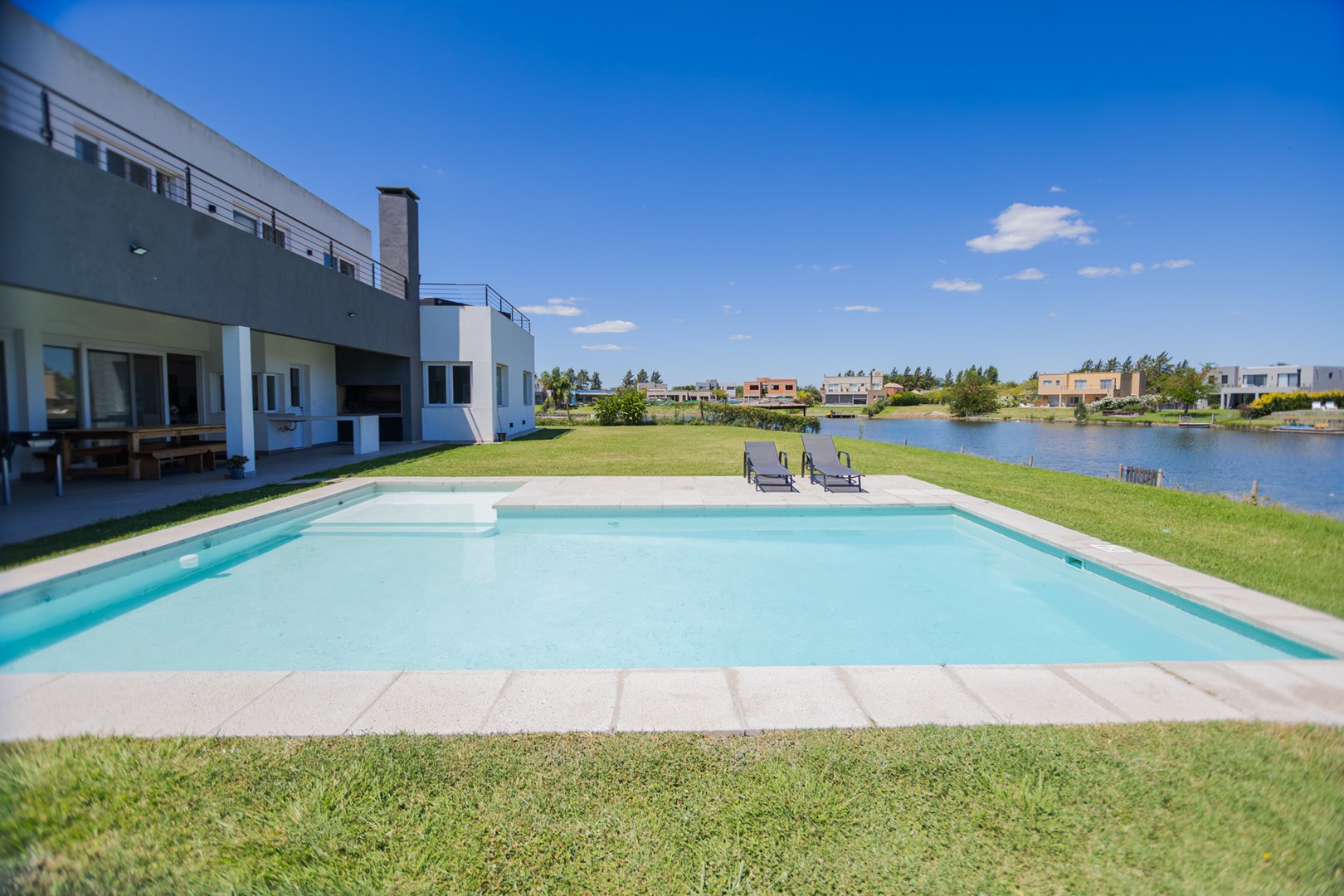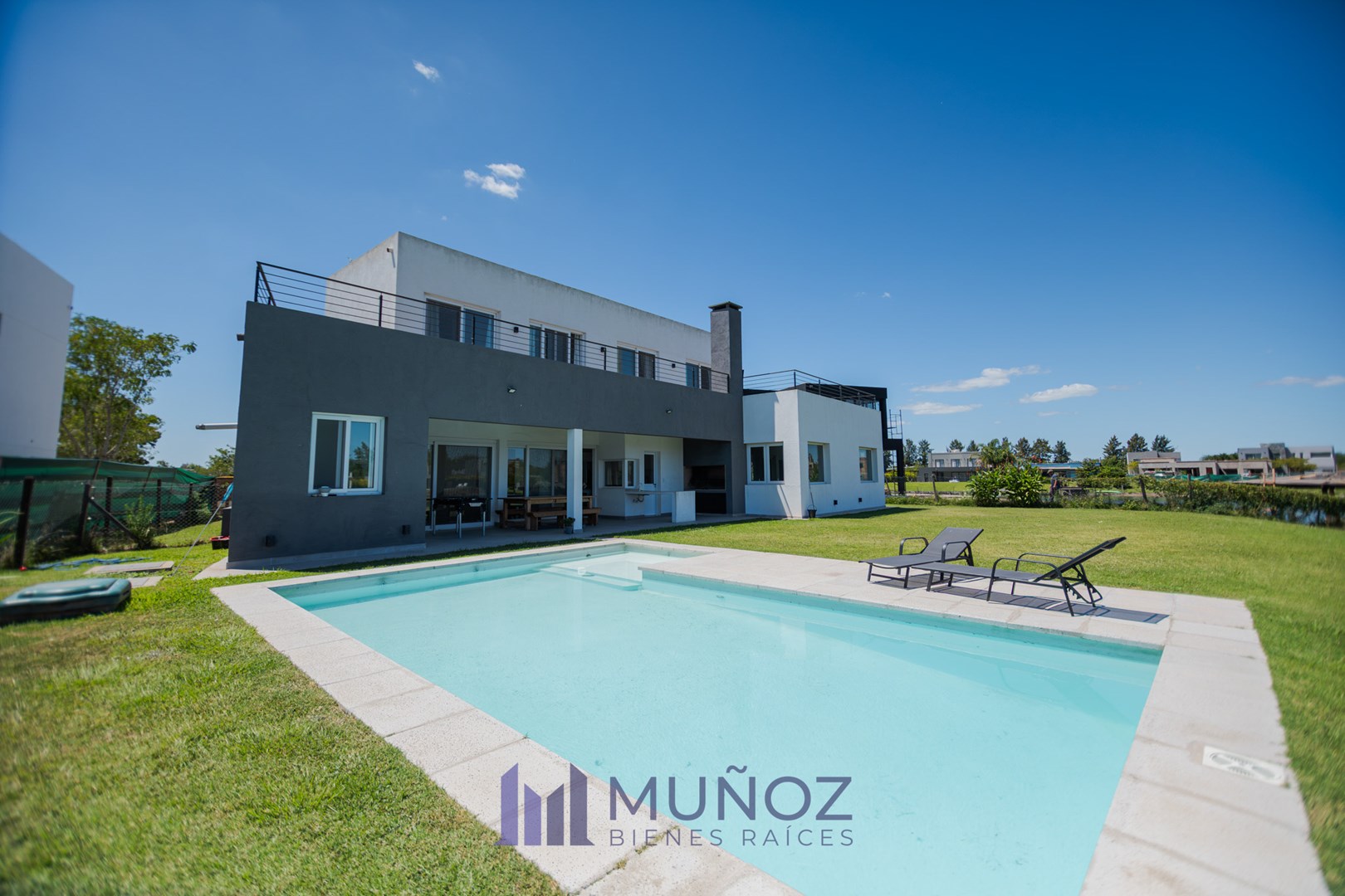 Casa a la laguna con pileta de Estilo Moderno en San Matías, pensada para disfrutar de la gran vista abierta a la laguna desde todos sus ambientes. Planta Baja: - Living Comedor con cocina integrada con isla. - Habitación de huésped o escritorio. - Toilette. - Lugar de guardado bajo escalera. - Playroom generoso muy adaptable a diversos usos (originalmente diseñado para estudio de grabación), también con vista a la laguna. Planta Alta: - Todos los dormitorios tienen vista a la laguna y dos de ellos cuentan con salida al balcón aterrazado. - 2 Dormitorios secundarios. - 1 Baño completo. - Dormitorio en Suite con vestidor y baño completo con ducha y bañera. - Espacio para Escritorio. Exterior: - Galería cubierta con parrilla, barra y bacha. - Lavadero con baño exterior para piscina - Piscina de 40 m2 con solarium. - Costa propia de 40 m sobre la laguna Una casa construida de manera tradicional con materiales de calidad. - Todos los ambientes cuentan con Aire Acondicionado Inverter frío/calor. - Hogar en el living - Losa Radiante - Riego automático El barrio cuenta con todos los servicios: agua potable, electricidad, gas y cloacas. Amenities: Sector deportivo con canchas de fútbol, tenis, canchas de usos múltiples, piscina de uso común, Club House y una Plaza de juegos para niños. San Matías tiene un acceso rápido desde la Autopista Panamericana KM 44 , asfaltado, iluminado y parquizado, que conecta a todos los barrios de la zona de El Cantón y Puertos del Lago. ¡Coordiná tu visita ahora y vení a conocerla! CMZC 590